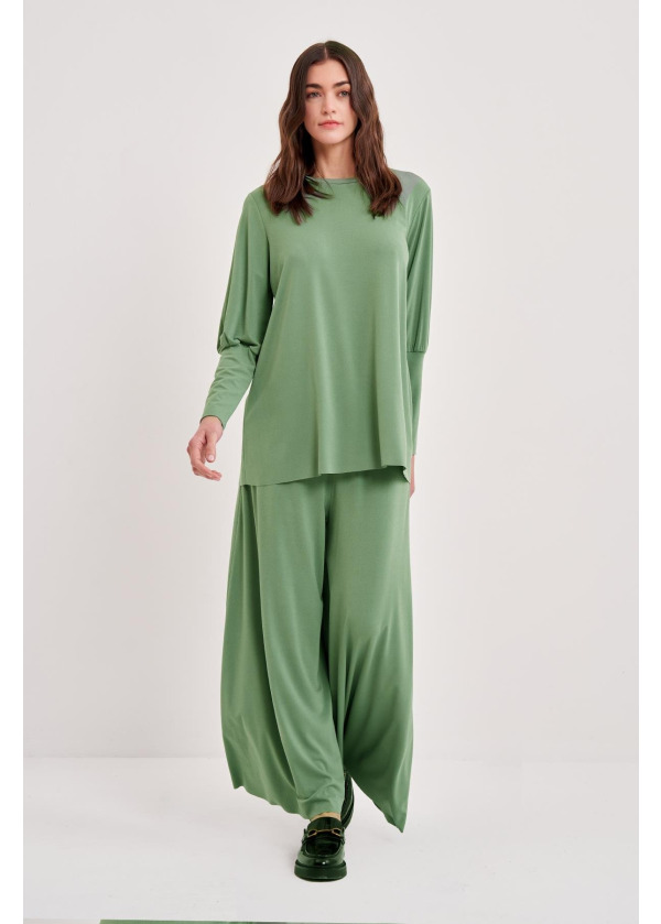 KREP JARSE KOLLARI UZUN MANŞETLİ BLUZ ÇAĞLA YEŞİLİ