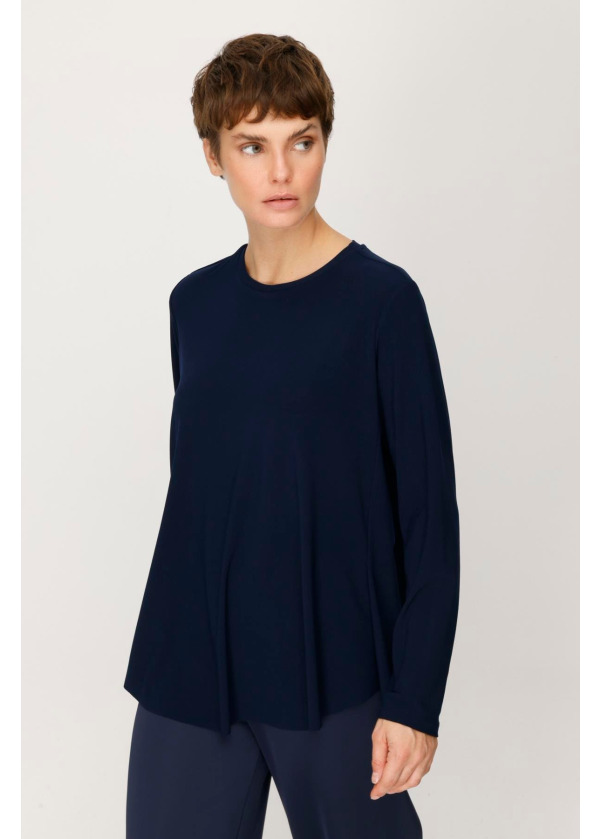 Krep Jarse Önü Kısa Arkası Uzun Bluz Lacivert