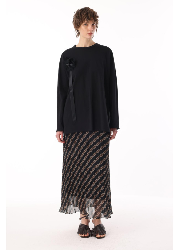 ŞİFON KROŞKİ BLOK DÖRTGEN DESENLİ PLİSELİ ETEK